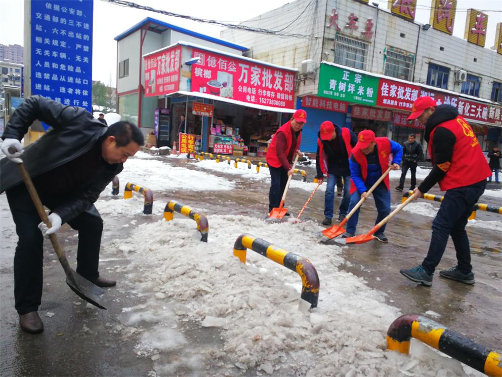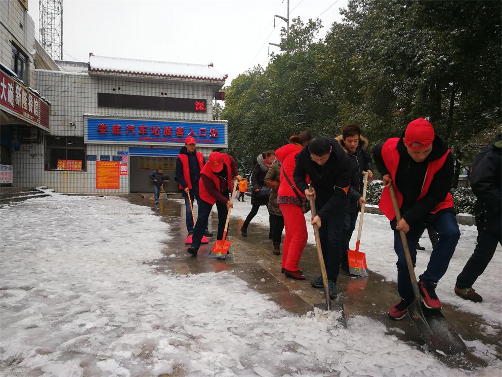 早上八點(diǎn)半,在車站生產(chǎn)副經(jīng)理付育平帶領(lǐng)下,辦公室、調(diào)度、稽查大隊(duì)、營(yíng)收監(jiān)控隊(duì)、服務(wù)班、安保等部門(mén)近20多名志愿者拿著鏟子、鐵鍬和竹掃把等工具,對(duì)車站旅客入口處通道、車輛進(jìn)站通道、車站站坪、短途通道、車輛出站通道等地的堅(jiān)冰進(jìn)行鏟除,寒風(fēng)凜冽,積雪厚重,冰塊堅(jiān)硬,但我們的雷鋒志愿者們熱情高漲,大家發(fā)揚(yáng)不怕若不怕累的精神,齊心協(xié)力,分工合作,揮鍬掄鎬,鉚足了勁,發(fā)起了挑戰(zhàn)嚴(yán)冰暴雪的攻堅(jiān)戰(zhàn),在車站奏響了美妙的樂(lè)意,汗水濕透了背脊,手掌磨起了血泡,冰雪打濕了鞋襪,大家全然不顧,只看見(jiàn)一頂頂小紅帽在雪地上不停的運(yùn)轉(zhuǎn),很多駕駛員和班線承包人紛紛加入鏟雪隊(duì)伍,婁星微馬隊(duì)的20多名隊(duì)員們?cè)谒麄冴?duì)長(zhǎng)的帶領(lǐng)下也來(lái)到車站幫著一起鏟雪除冰,他們橙色的微馬隊(duì)服也是一道道靚麗的風(fēng)景線。大家都有一個(gè)共同的名字——學(xué)雷鋒志愿者!他們的一言一行彰顯真情,贏得了過(guò)路市民的連聲稱贊!